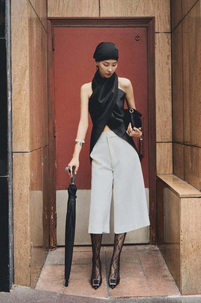 Giữa nhịp sống năng động của thứ Ba, tinh thần avant-garde từ Balenciaga và Maison Margiela sẽ thắp lên vẻ ngoài đầy tự do cho ngày hạ. Với đường cắt giải cấu trúc táo bạo được tiết chế trong sắc đen trắng, bộ trang phục giữ lại trọn vẹn vẻ tinh giản cần thiết cho ngày thường. Đặc biệt, vẻ lấp lánh từ phụ kiện Swarovski, kính mắt Gentle Monster hay giày gót vuông Charles & Keith khiến vẻ ngoài trở nên phóng khoáng nhưng không hời hợt. Cuối cùng, nốt hương bí ẩn từ Byredo sẽ hoàn thiện một diện mạo cá tính và gợi cảm.