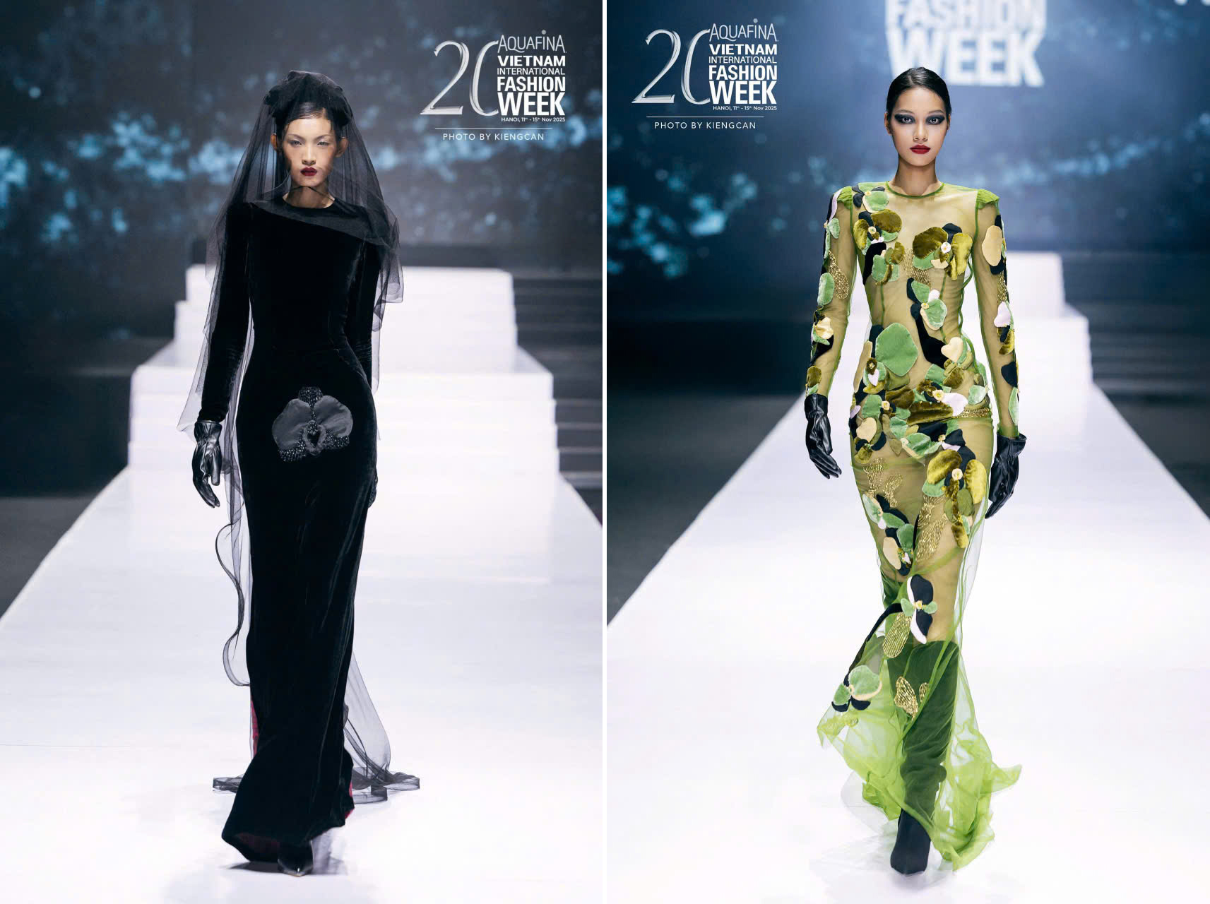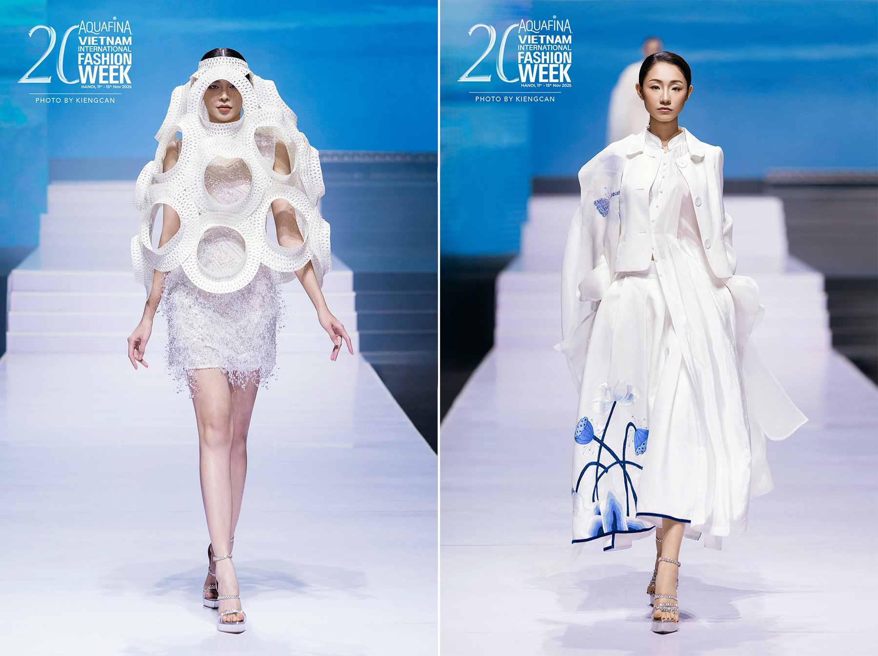 Sân khấu của đêm khai mạc được phủ ánh sáng trắng ngọc trai, biểu trưng cho “thuần khiết”, chủ đề xuyên suốt của mùa thứ 20. Trên sàn catwalk, mỗi bộ sưu tập như một bản tuyên ngôn về bản sắc, nơi cái đẹp không chỉ được nhìn thấy, mà còn được cảm nhận bằng cảm xúc.