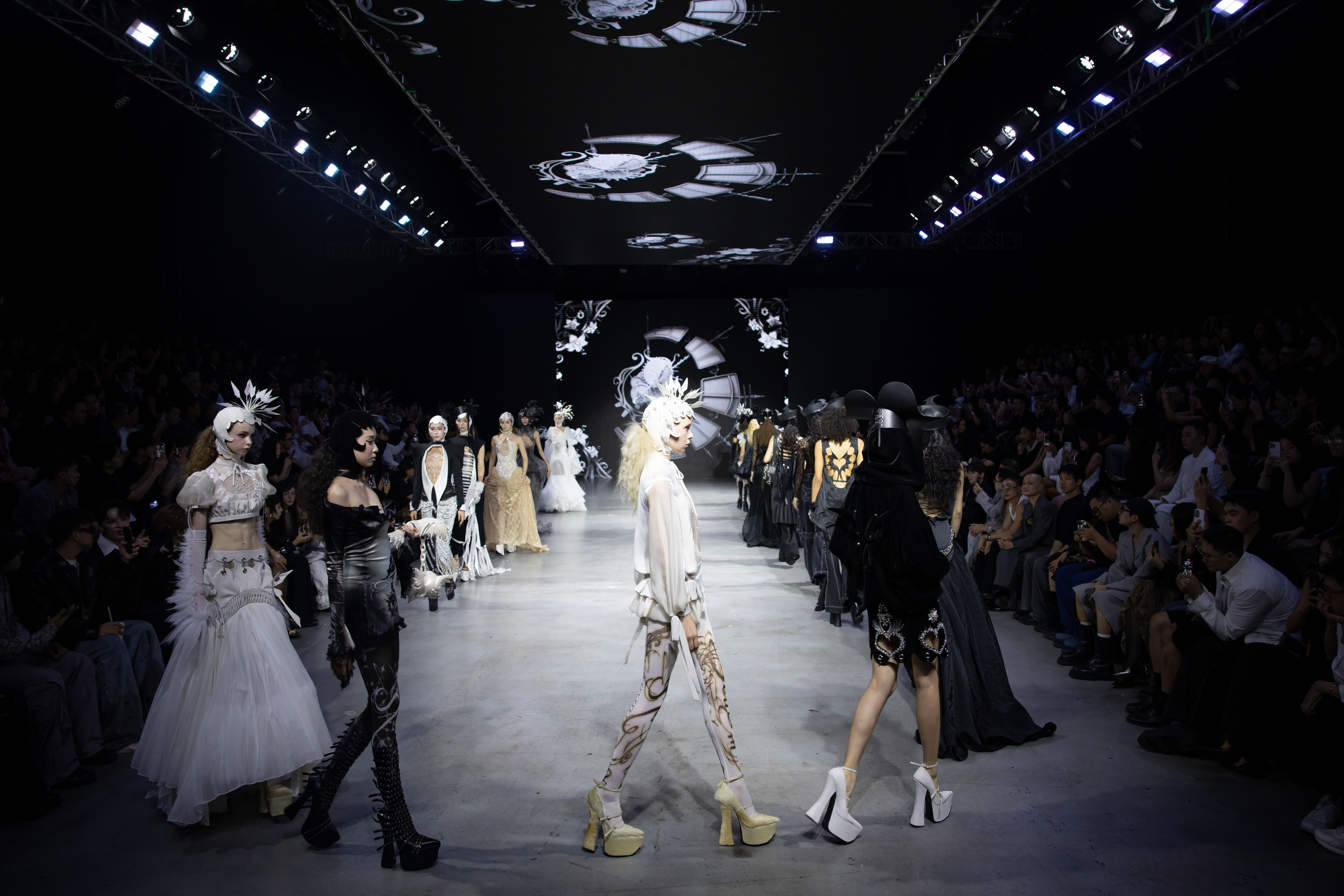 LA LUNE của Đắc Thắng mở màn với “245KM” đầy mộng mị, tái hiện dòng thời gian đời người. CAOSTU của Quý Cao mang đến tinh thần menswear phá cách với “THE BEETLE” và sự kết hợp độc đáo của gốm. Elena Nguyễn với ELENA NGN trình làng “XI Collection: Setsuka” đậm chất phi giới tính, giao thoa giữa mạnh mẽ và mong manh. DUC STUDIO của Minh Đức Nguyễn thể hiện sự “dị biệt” ngông cuồng qua “Hiệp Sĩ Đường Phố”. Cuối cùng, T-REDX của Huyền Bùi khép lại đêm diễn bằng không gian đường phố ấn tượng với “Everywhen, Everynow”, khẳng định giá trị thủ công trong urban wear.