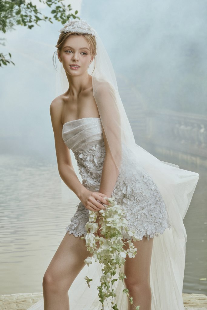 Trong bộ sưu tập (BST) này, NTK khai thác nhiều phom dáng khác nhau, từ ballgown lộng lẫy, mermaid gợi cảm, A-line thanh lịch cho đến mini dress cá tính. Các chất liệu cao cấp như tulle, satin và mikado được xử lý bằng kỹ thuật layering nhiều tầng, gợi liên tưởng đến những trang thư chứa đựng nhiều kỷ niệm.