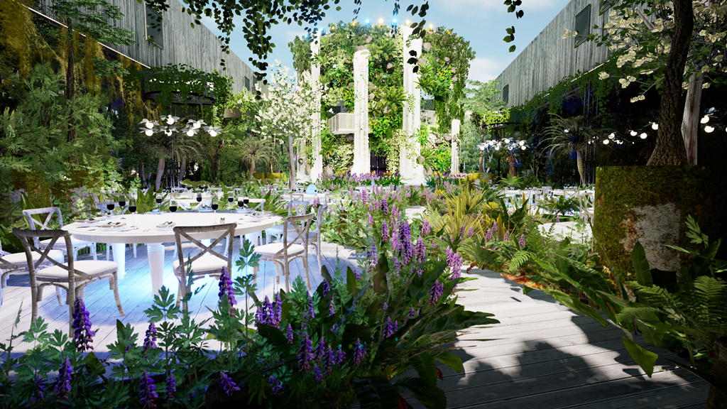 Toàn bộ phần sàn diễn sẽ được phủ màu xanh tươi mát, điểm xuyết sắc màu của các loại hoa tươi ngoại nhập. Điểm nhấn của show là thác nước cao bằng ba tầng lầu, được dựng ở ngay sân khấu chính. Ngoài ra, show diễn còn có sự kết hợp giữa không gian “thực cảnh” và công nghệ trình chiếu, ánh sáng hiện đại bậc nhất hiện nay. Vì concept khá cầu kỳ, phức tạp, công đoạn set-up, thi công đã bắt đầu trước show diễn một tuần.