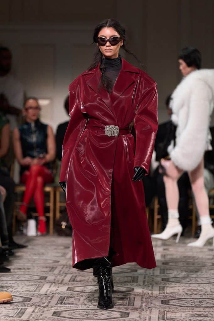 Màu đỏ anh đào (maraschino red) nhanh chóng trở thành gam màu “hot” nhất trong các bộ sưu tập Thu – Đông 2025. Sắc đỏ này xuất hiện dày đặc trên sàn diễn, từ những thiết kế đơn sắc của Calvin Klein đến các điểm nhấn tinh tế trong bộ sưu tập của Khaite. Màu đỏ anh đào được khéo léo sử dụng để “thắp sáng” các bộ trang phục với quần da và áo hoodie cỡ lớn, tạo nên sự tương phản màu sắc độc đáo và thể hiện cá tính mạnh mẽ của người mặc. Christian Siriano, nhà thiết kế vốn yêu thích màu đỏ, đã “nhuộm” sàn diễn của mình với gam màu này qua những thiết kế vừa mạnh mẽ, vừa quyến rũ nhưng vẫn mang tính ứng dụng. Ông chia sẻ: “Màu đỏ xuất phát từ ý tưởng về sức mạnh”. Xu hướng đỏ anh đào vì thế trở thành biểu tượng của sự tự tin và cá tính của người phụ nữ hiện đại.