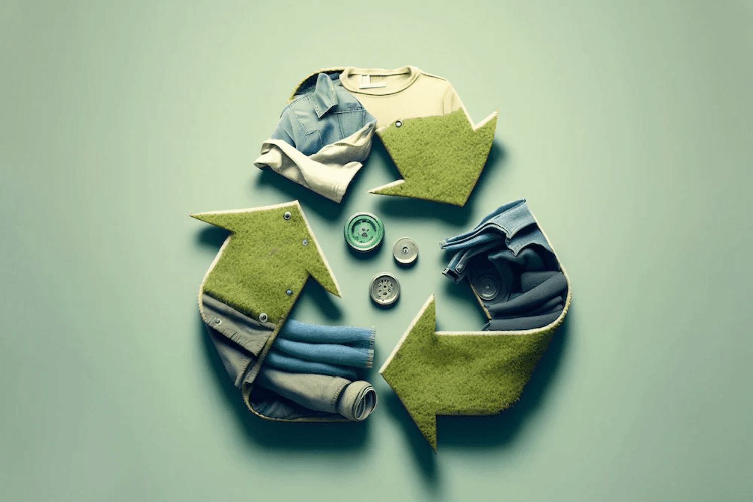 Biểu tượng tái chế được tạo thành từ quần áo và phụ kiện thời trang thể hiện tính bền vững