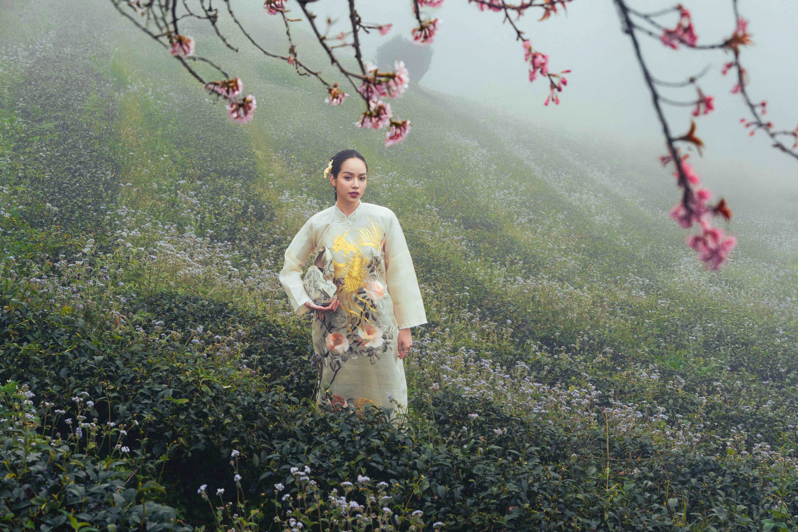 Trong tiết trời sương giá, những nụ đào vẫn ra hoa đỏ rực cả một khoảng không gian như thể những đốm lửa báo hiệu mùa xuân đã về. Vẻ đẹp của đất trời mùa xuân được biểu đạt qua sức sống đua nở của muôn loài hoa, và ở đó, người phụ nữ Việt Nam trong tà áo dài chính là bông hoa đẹp nhất khiến lòng ta say đắm và thiết tha vô cùng. Bộ hình là món quà dành cho độc giả Heritage Fashion, với mong muốn mang niềm tin về một năm mới dịu dàng và rực rỡ. Cuộc đời sẽ luôn bừng nở như trăm hoa mùa xuân.