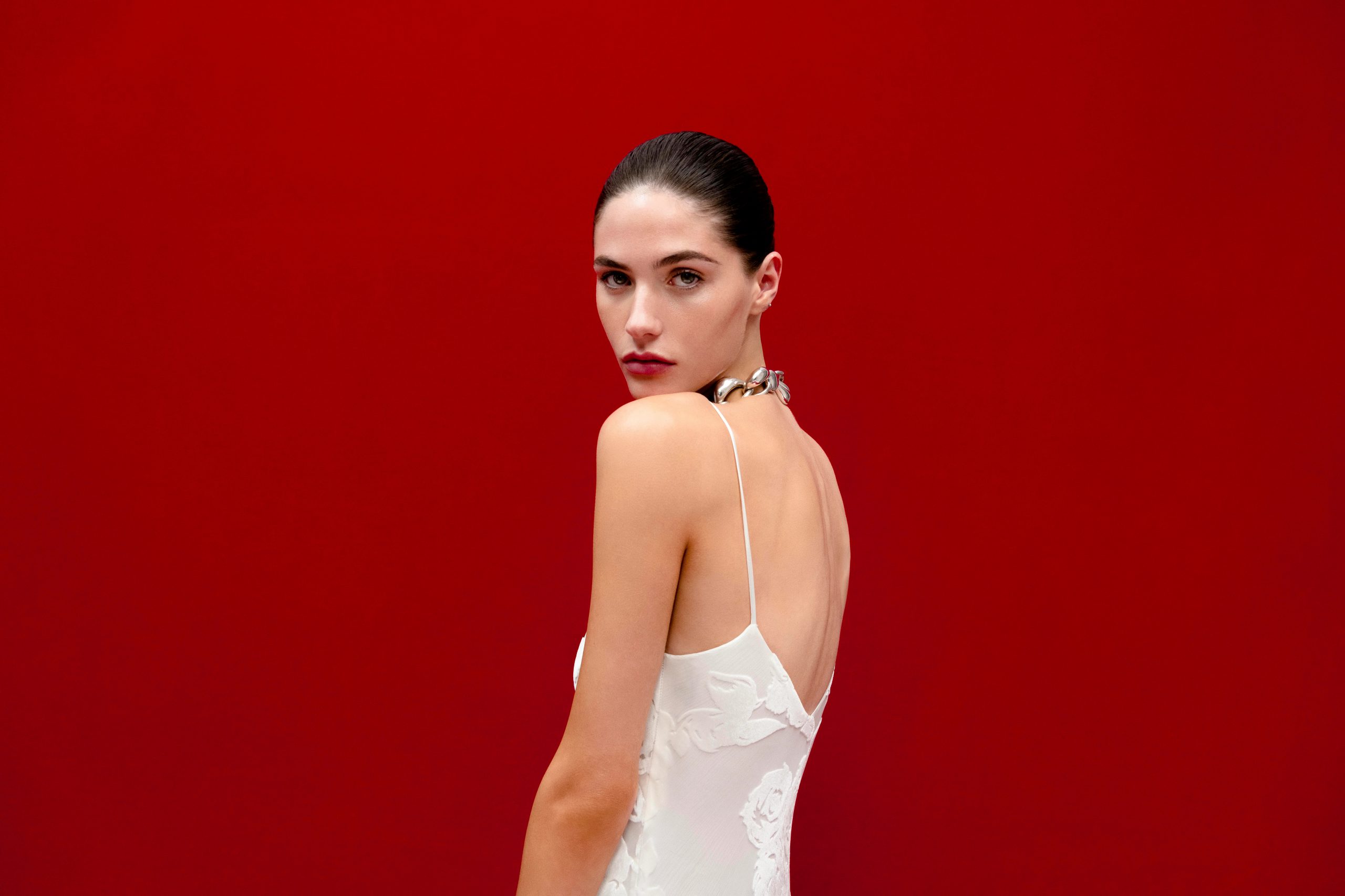 Hãy chọn cho mình một thỏi son đỏ thật rực rỡ, mạnh dạn thoa đầy bờ môi với đường viền sắc sảo, để mỗi một lần bạn cười là một lần bạn khiến mình tỏa sáng. Thế nhưng, thay vì kết hợp với lớp trang điểm đậm thì xu hướng làm đẹp gần đây lại linh hoạt chiết giảm phần mắt và má để tập trung chau chuốt một lớp nền căng mướt, mịn màng. Có như vậy, bạn sẽ dung hòa được hai mặt đối lập giữa sự quyền lực của đôi môi đỏ và sự trong trẻo ngây thơ vốn là vẻ đẹp luôn được yêu thích ở các cô dâu.